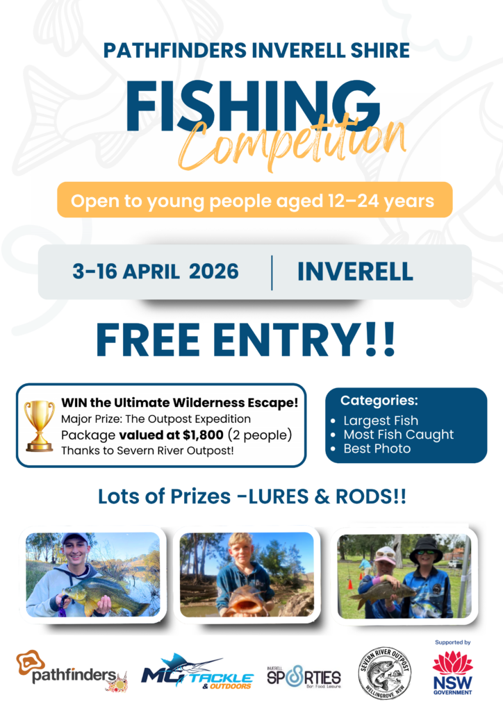 Get ready to cast a line and be part of the action this Youth Week! The Pathfinders Fishing Competition is open to young people aged 12–24 years who live in the Inverell Shire.